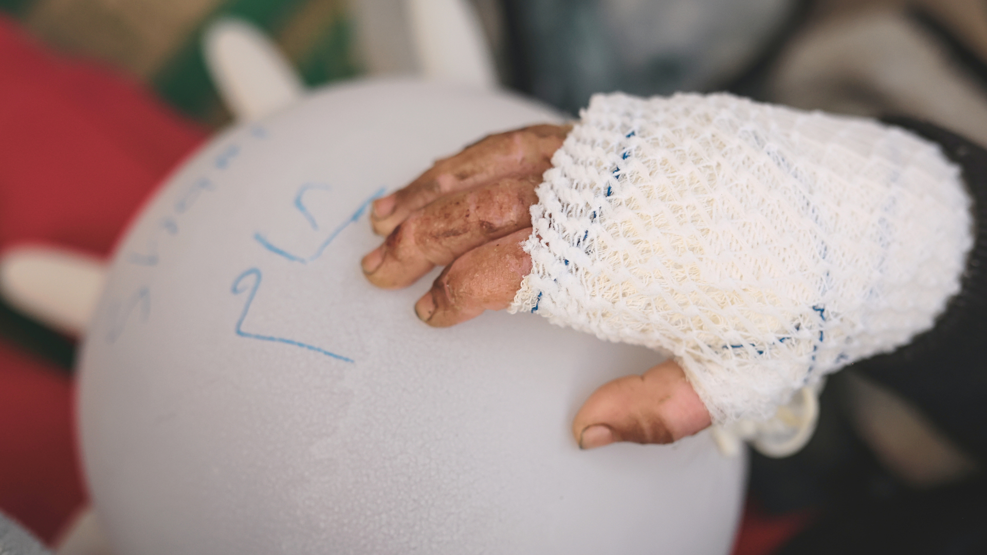 Severe burns require complex and long-term care, including multiple surgeries and daily wound dressing changes. This level of care is inaccessible in Gaza. Palestine 2025 © MSF