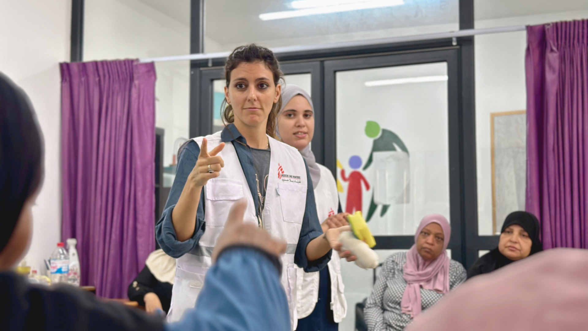 Most of the women have little to no medical training, but they have come to learn how to care for wounds, apply tourniquets, and provide basic first aid in a Stop the Bleed training organized by Doctors Without Borders/Médecins Sans Frontières (MSF). This training will allow them to care for family members and friends until they can reach a medical facility during frequent Israeli military incursions.